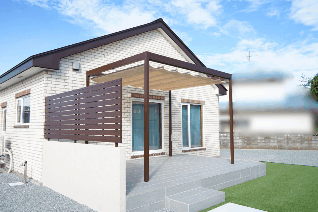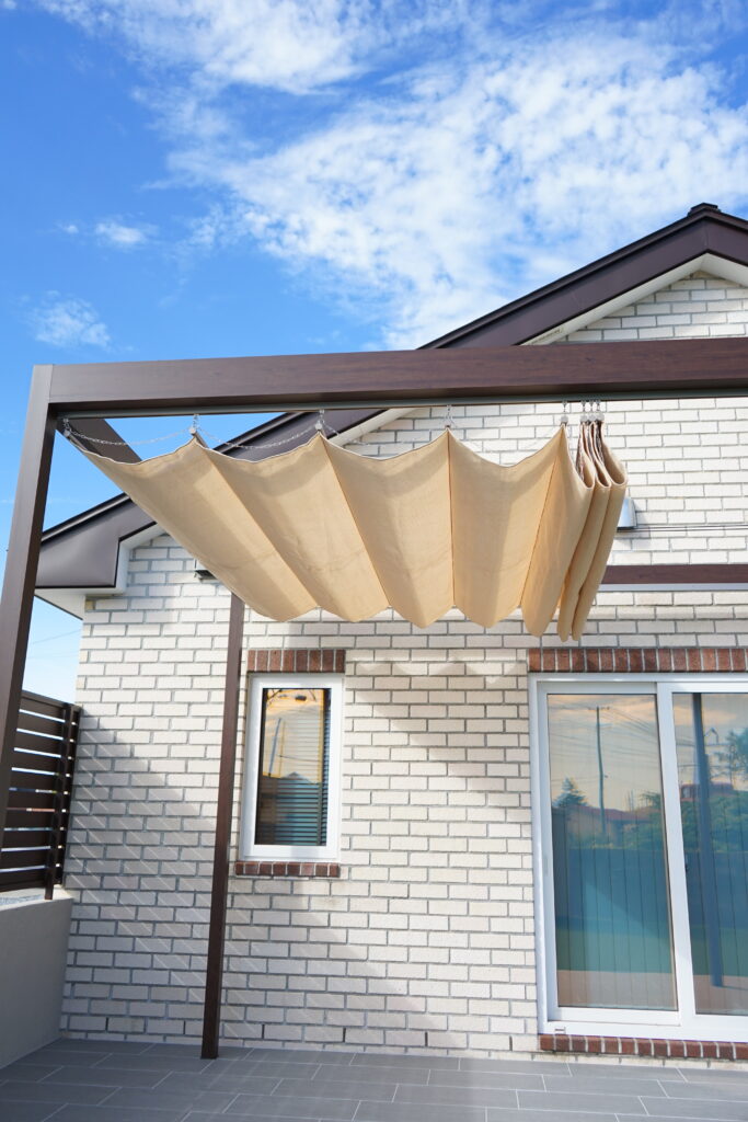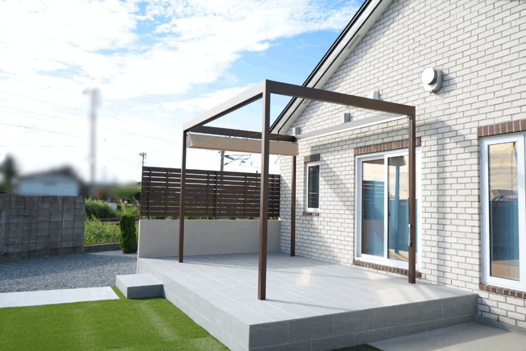 タイルデッキとパーゴラが生み出す非日常のくつろぎ空間